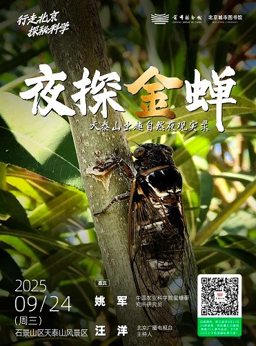 内容:走进夜幕下的天泰山,探秘昆虫的隐秘世界。学习和利用昆虫的趋光性,开展昆虫夜捕活动,了解不同昆虫的生长环境与特点,近距离观察不同昆虫的独特行为,见证北京本土昆虫的生存策略。了解昆虫的适应性和有趣的进化历程,昆虫与植物之间的共生密码,讨论昆虫在生态系统中的作用。