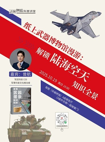 内容:少年强则国强!了解武器装备知识和历史,能够让青少年读懂“创新是民族的基因”,看见“科技是强国的底气”。本次讲座将以《世界武器装备知识图解》为切入点,从星链、无人机等前沿军事科技及人才培养等话题展开,解析人工智能、材料学等领域的关联,并对比中美STEM人才数据,探讨中国理工科人才培养现状与高考改革、“101 计划”等举措,也将通过中美军工发展差异,呈现基础工业进步对国防的意义,带领青少年感受军事科技的魅力,从自身兴趣出发,找到学科探索的方向,看见科技发展与人才成长的深层逻辑。