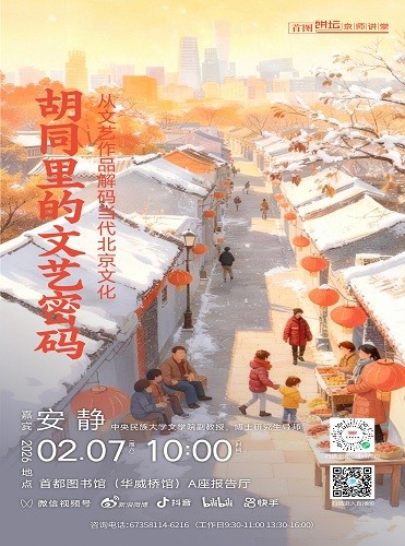 内容:本次讲座将带您领略京味文化的独特魅力。我们将从老舍等作家的经典小说出发,一路探寻到当下热播的影视作品,解读其中鲜活的老北京生活图景。您将看到胡同里的邻里人情,感受到世代传承的规矩与讲究。让我们一起,解锁藏在字里行间与镜头语言中的“京味密码”,在热气腾腾的烟火气里,读懂北京这座城的灵魂与精神底色。