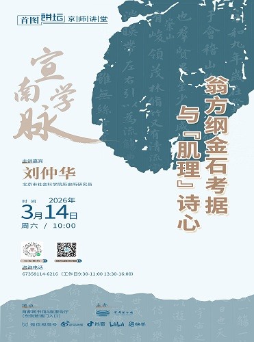地点:线上:进入“首都图书馆-云课堂直播间”,或者进入快手、哔哩哔哩、新浪微博、抖音、微信视频号等平台搜索“首都图书馆”官方账号观看。
