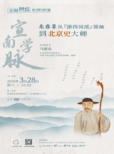 内容:本场讲座从朱彝尊家世及其成长为导引,分四个历史阶段简要的介绍朱彝尊的一生经历,并将他撰著《日下旧闻》的主要成就和对北京历史研究的贡献,作为讲述重点进行展开。通过讲座,将朱彝尊年轻时代的“抗清”、中年时期对清政权的矛盾心态以及以“海内四布衣”的身份应“博学鸿儒科”,再到晚年与清朝统治阶层的互动,尤其是他所撰著《日下旧闻》对北京历史文化的影响,让人们对清初统治者对汉族文人学士的笼络政策有一个初步的认识。也通过对《日下旧闻》的成书分析,对北京历史文化的研究有一个比较深入的了解。
